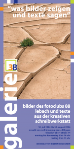 Unter dem Titel was bilder zeigen und texte sagen präsentieren wir ab 18.07.2024 Bilder des Fotoclub 88 Lebach e. V. zusammen mit Texten unserer kreativen Schreibwerkstatt. Nähere Informationen finden Sie hier.